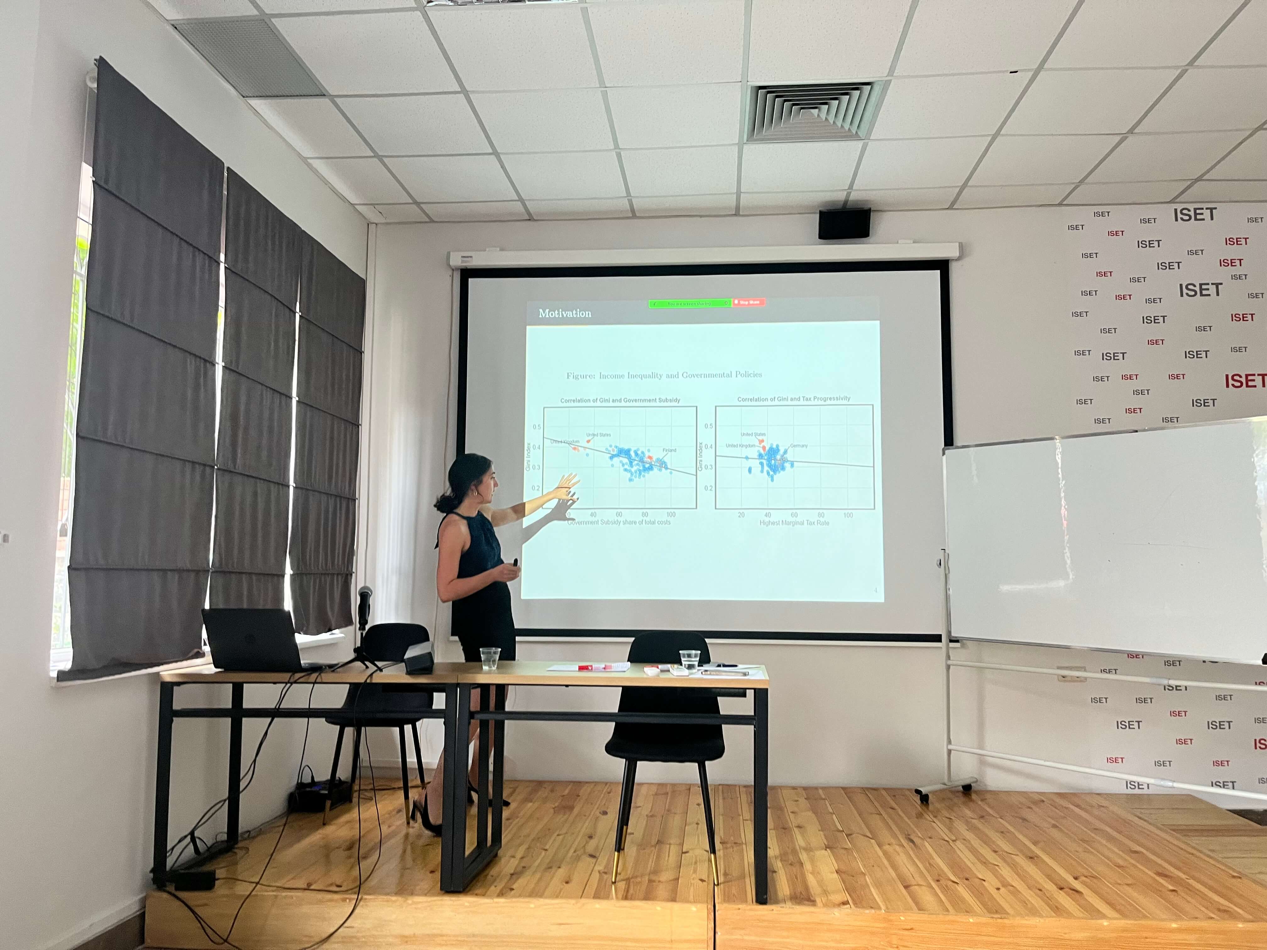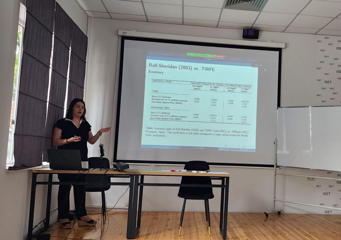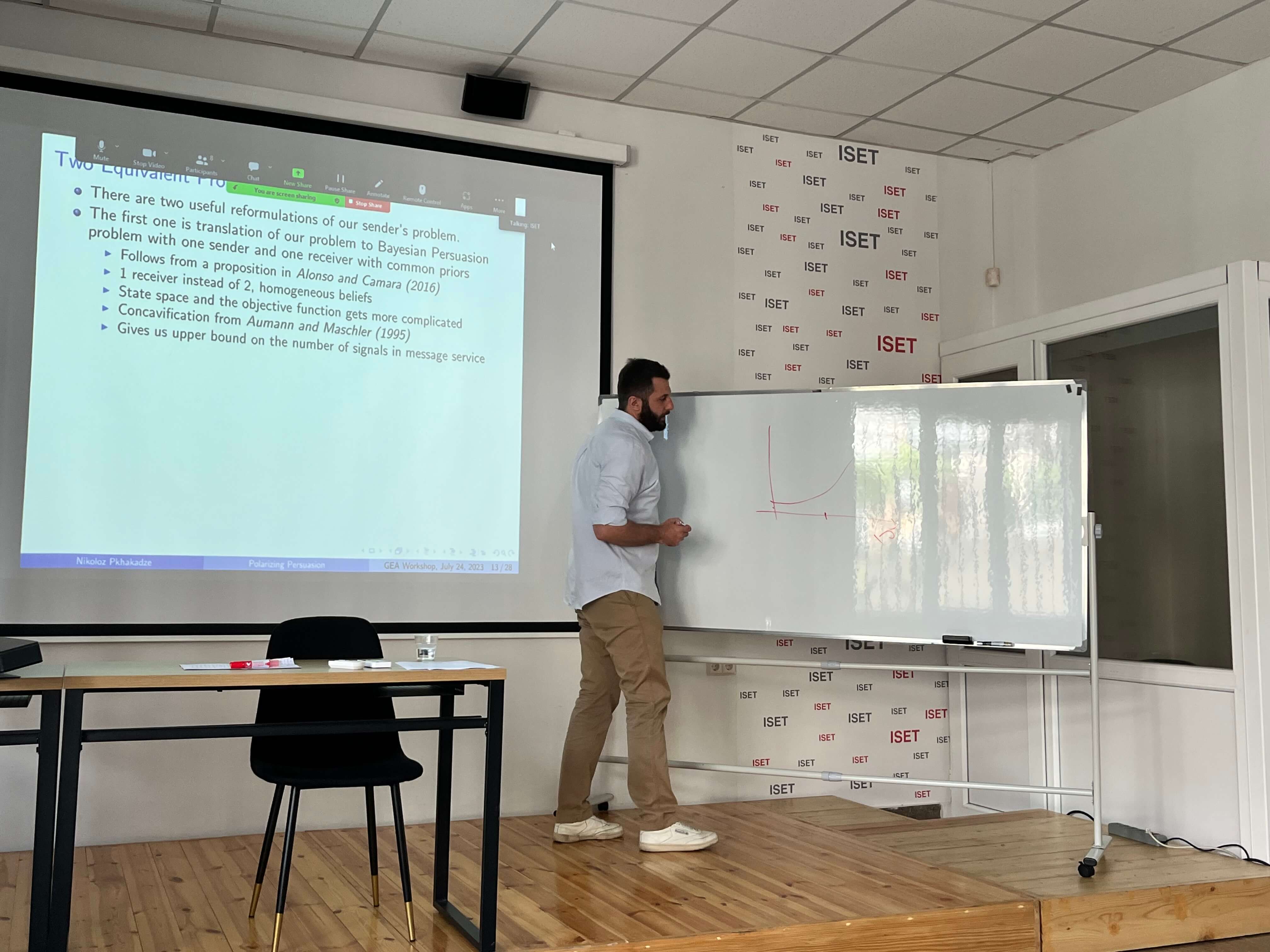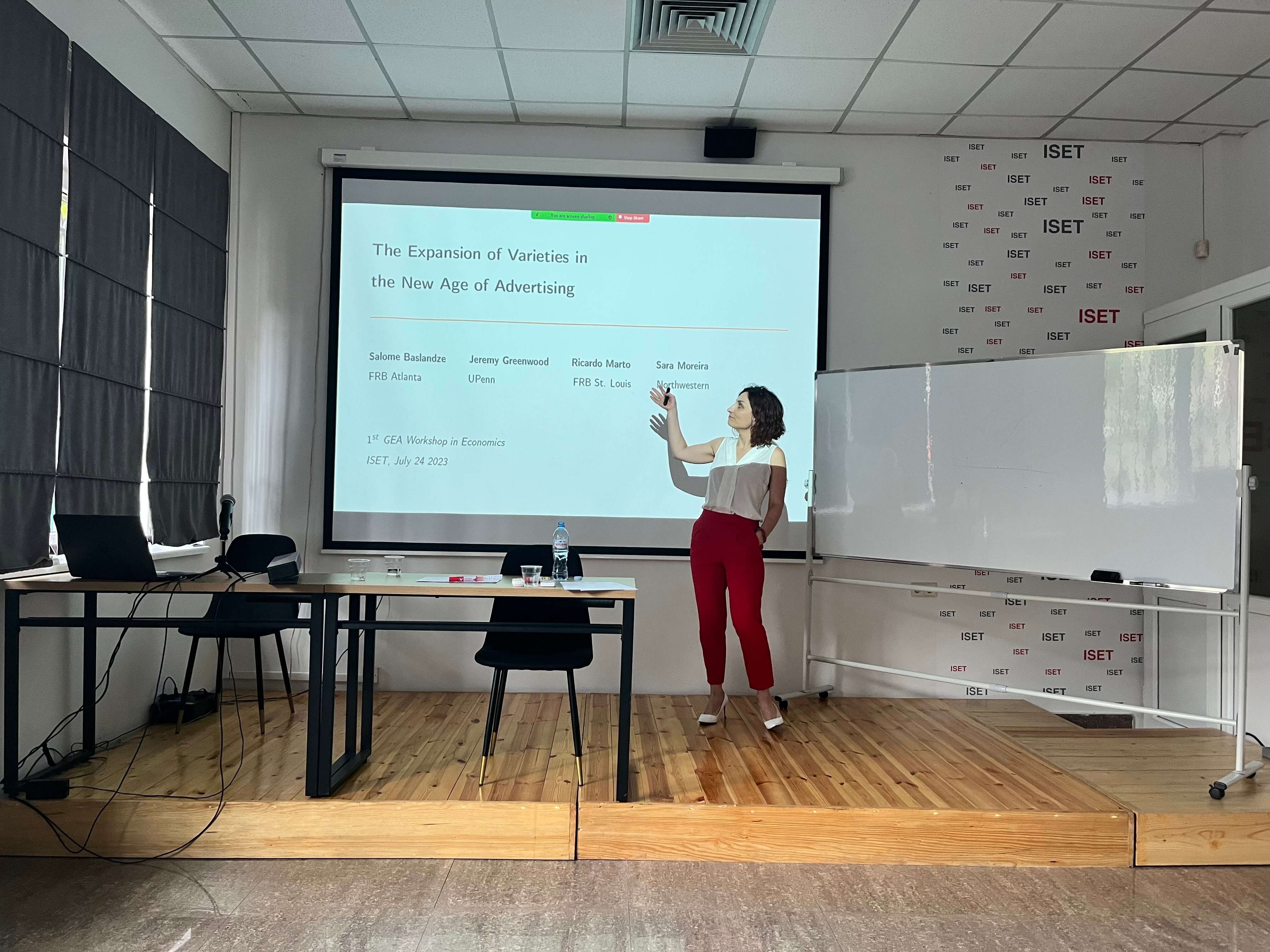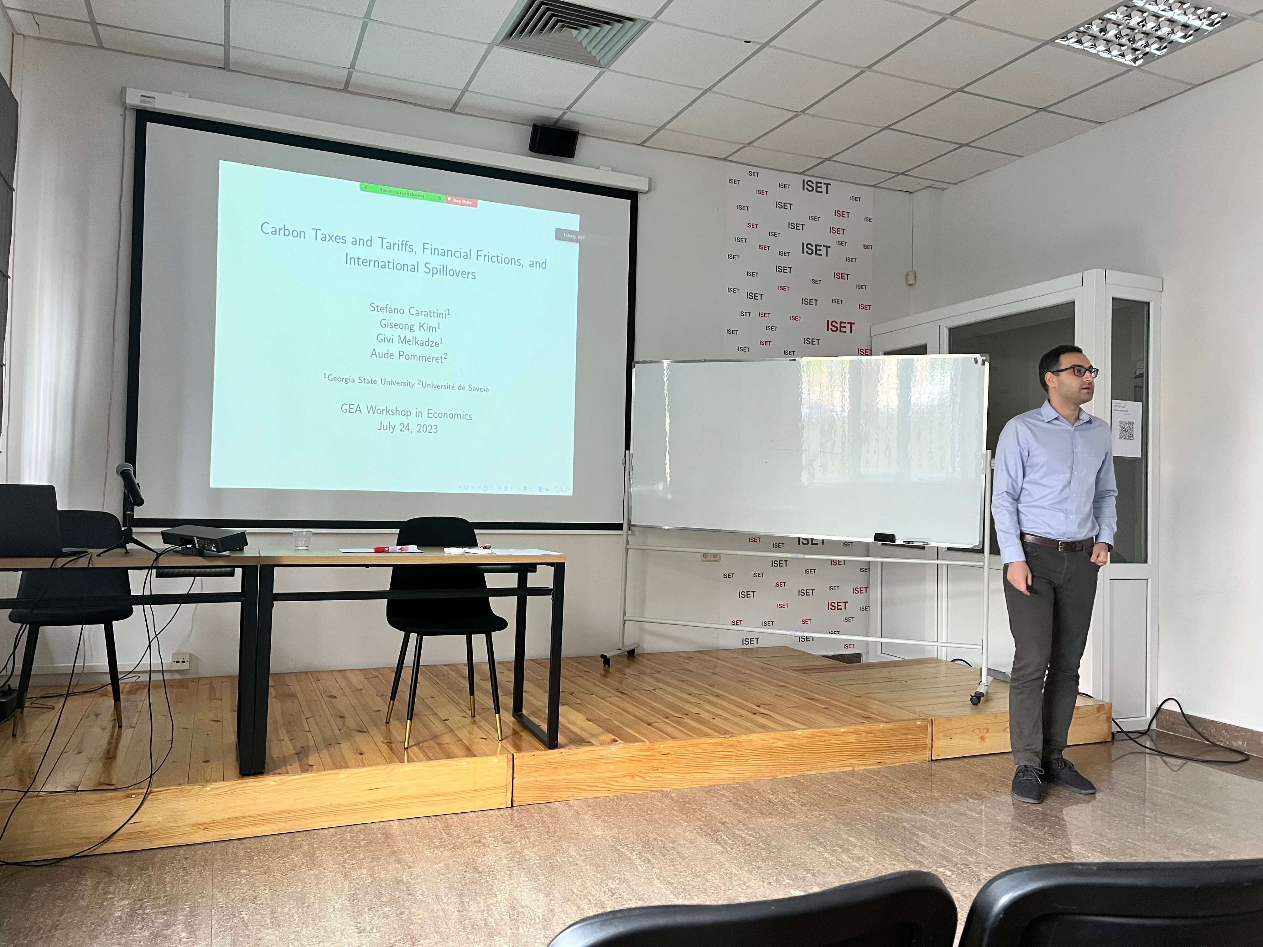 The 1st GEA Workshop in Economics was held at ISET, Tbilisi, on July 24th, 2023. The event featured eight presentations by Georgian researchers from different countries and gathered a lively audience of local faculty, researchers, and students.
