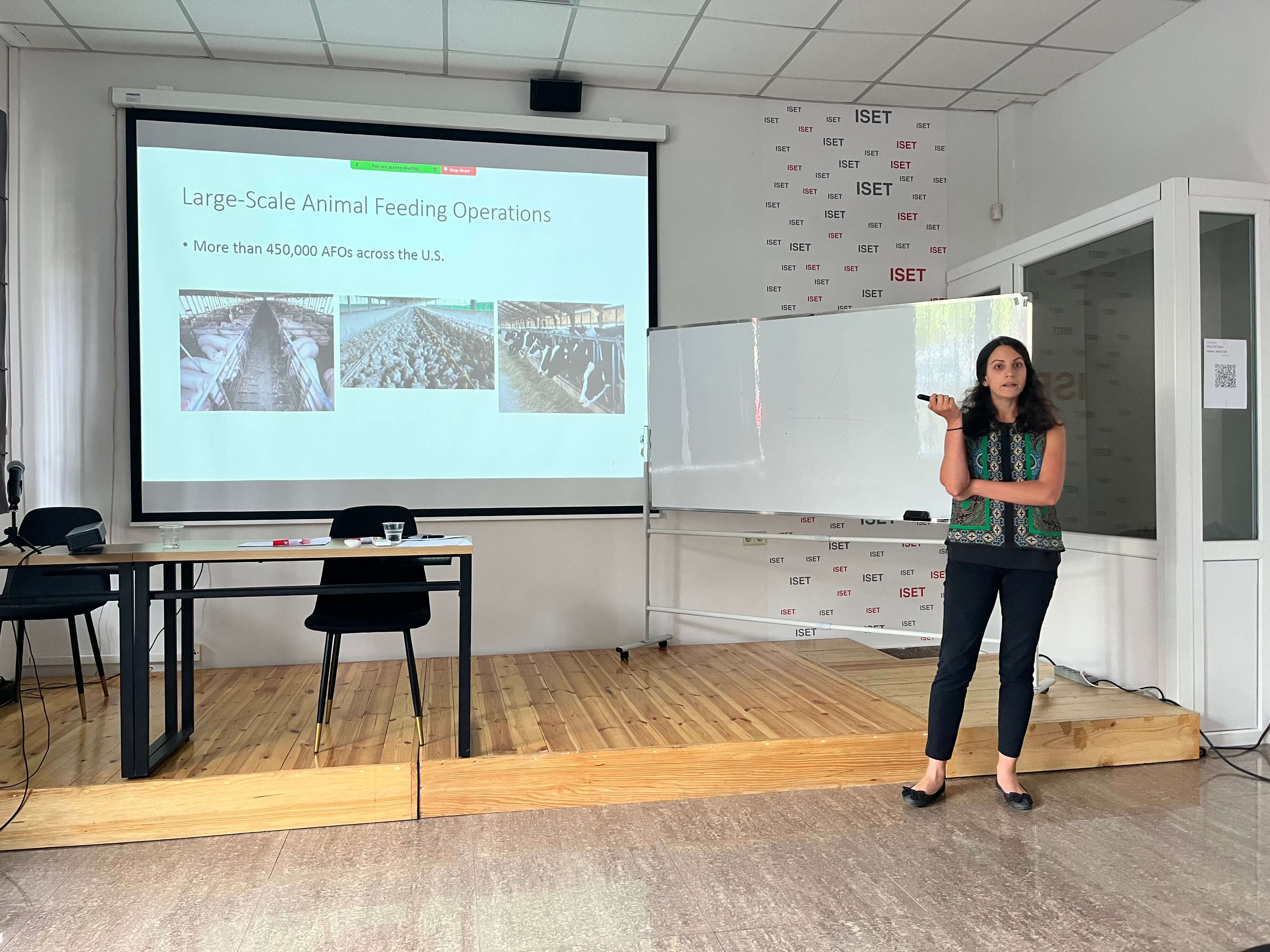 The afternoon sessions were concurred by Nino Abashidze (University of Wyoming), who shifted gears towards understanding the environmental consequences of farming. She discussed the potential adverse effects of the large-scale farming industry on public health by presenting “Seasonal Airborne Exposure Shape Birth Outcomes Near Hog Farms,”—a work coauthored with J. Hochard and L. Taylor. In her research, Nino employed a novel methodology to identify and measure the impact of hog farms on child health outcomes through air exposure. Oliko Vardishvili (the University of California, Irvine) discussed her study with F. Wang titled “Education Affordability and Income Inequality.” The study investigates the specific governmental policies that contribute to rising income inequality. The findings reveal that costly postsecondary education is a key factor in increasing income inequality by reducing the supply of college-educated individuals and subsequently driving up college wage premium. In the last session, Sandro Shelegia (Universitat Pompeu Fabra and Barcelona GSE) spoke about his joint work with H. Bar-Isaac titled “Monetizing Steering.” He discussed the choice online marketplaces make between algorithmic steering and auction-based steering and how this choice affects consumers and sellers. Finally, Salome Baslandze (Federal Reserve Bank of Atlanta) concluded by discussing the product market implications of the recent rise in digital advertising based on “The Expansion of Varieties in the New Age of Advertising” – a work coauthored with J. Greenwood, R. Marto, and S. Moreira. She argued that the rise in digital advertising and improvements in consumer targeting by firms led to an increase in product varieties and economic welfare.